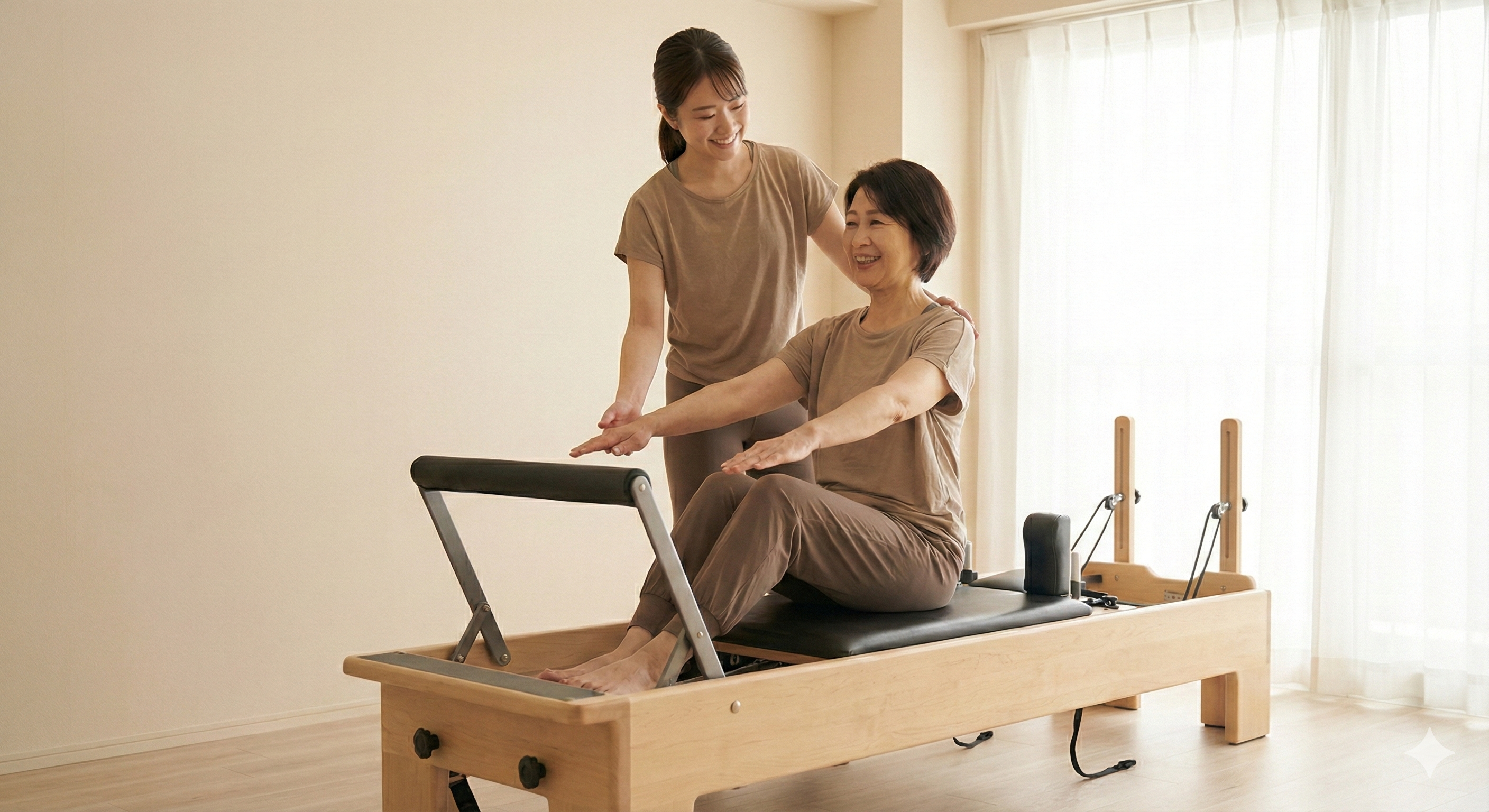 ピラティスリフォーマーやチェアなど様々なツールを用いて理想の身体に導きます。